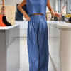 Omarm mode zonder ontspanning op te offeren, want onze combinatie van vest en wijde broek vormt de perfecte balans tussen chic en relaxed. En dankzij het eenvoudige onderhoud is het een fluitje van een cent om je ensemble te onderhouden, zodat je meer tijd overhoudt om te genieten van de complimenten die je zeker zult krijgen. Neem deze zomer geen genoegen met gewoontjes - maak een statement met de buitengewone Casual Glanzend Damesvest En Wijde Broek Set - Amy.