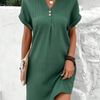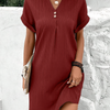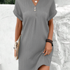 Geniet van een moeiteloze zomerstijl met deze lichte, losvallende jurk. Ontworpen met een flatterende V-hals en charmante knoopdetails, biedt hij de perfecte mix van comfort en relaxte elegantie voor zonnige dagen en casual uitjes.