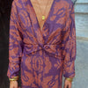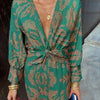 Bedrukte midi-jurk met knoopsluiting aan de voorkant en diepe V-hals