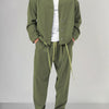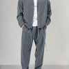 Deze tweedelige loungeset voor heren is ontworpen voor ontspannen momenten en casual gebruik buitenshuis en biedt een samenhangende look zonder overdrijving. De bijpassende boven- en onderkant zorgen voor moeiteloze combinaties, terwijl ze toch praktisch zijn.
