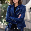 Voeg een vleugje kleur en karakter toe aan je garderobe met de Rhéa bikerjas – perfect voor wie durft op te vallen.