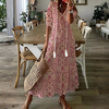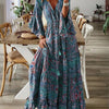 Stap in een wereld van moeiteloze charme met de Bohemian Maxi-jurk. Met een betoverende paisleyprint en zwierige trompetmouwen combineert deze jurk vrije elegantie met dagelijks comfort. De lichtgewicht stof en het pulloverontwerp zorgen voor een relaxte pasvorm die prachtig valt van schouder tot zoom.