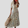 Een sierlijke maxi-jurk die de charme van Boho combineert met draagbaarheid: ideaal voor zomeravonden, speciale gelegenheden of om een ​​statement te maken in een relaxte stijl.