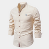 Dit overhemd biedt een moderne uitstraling met een klassieke afwerking. De opstaande kraag en de knoopsluiting geven een verfijnde touch. Gemaakt van ademende materialen voor langdurig comfort. Geschikt voor zowel formele als casual momenten.