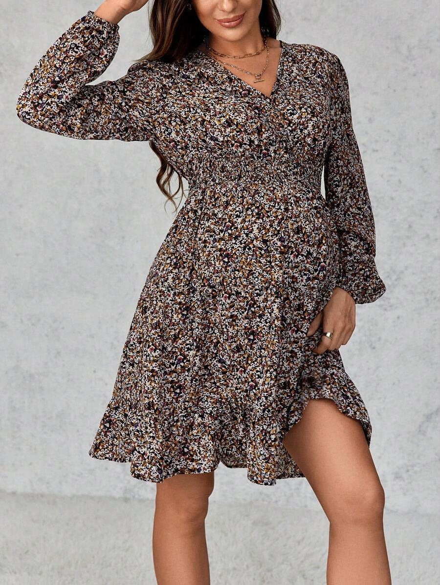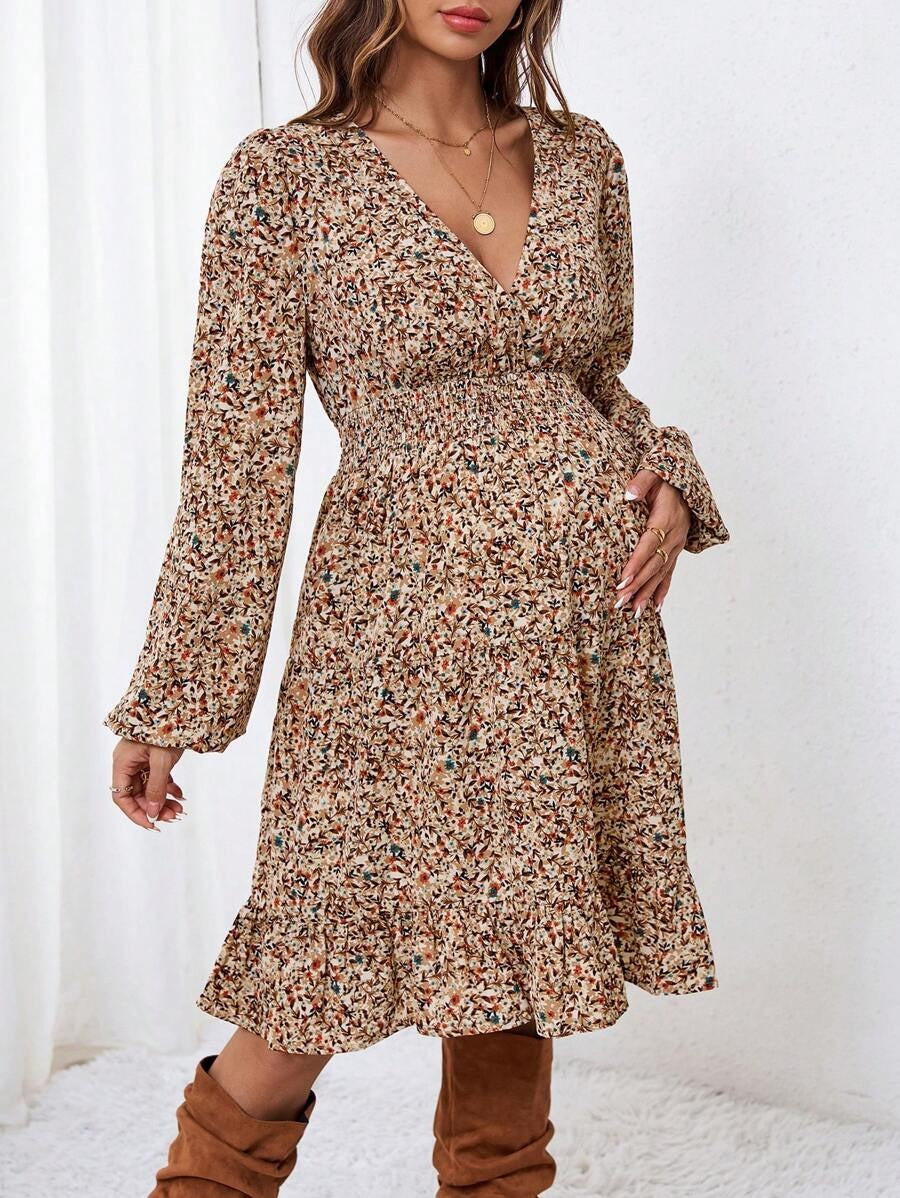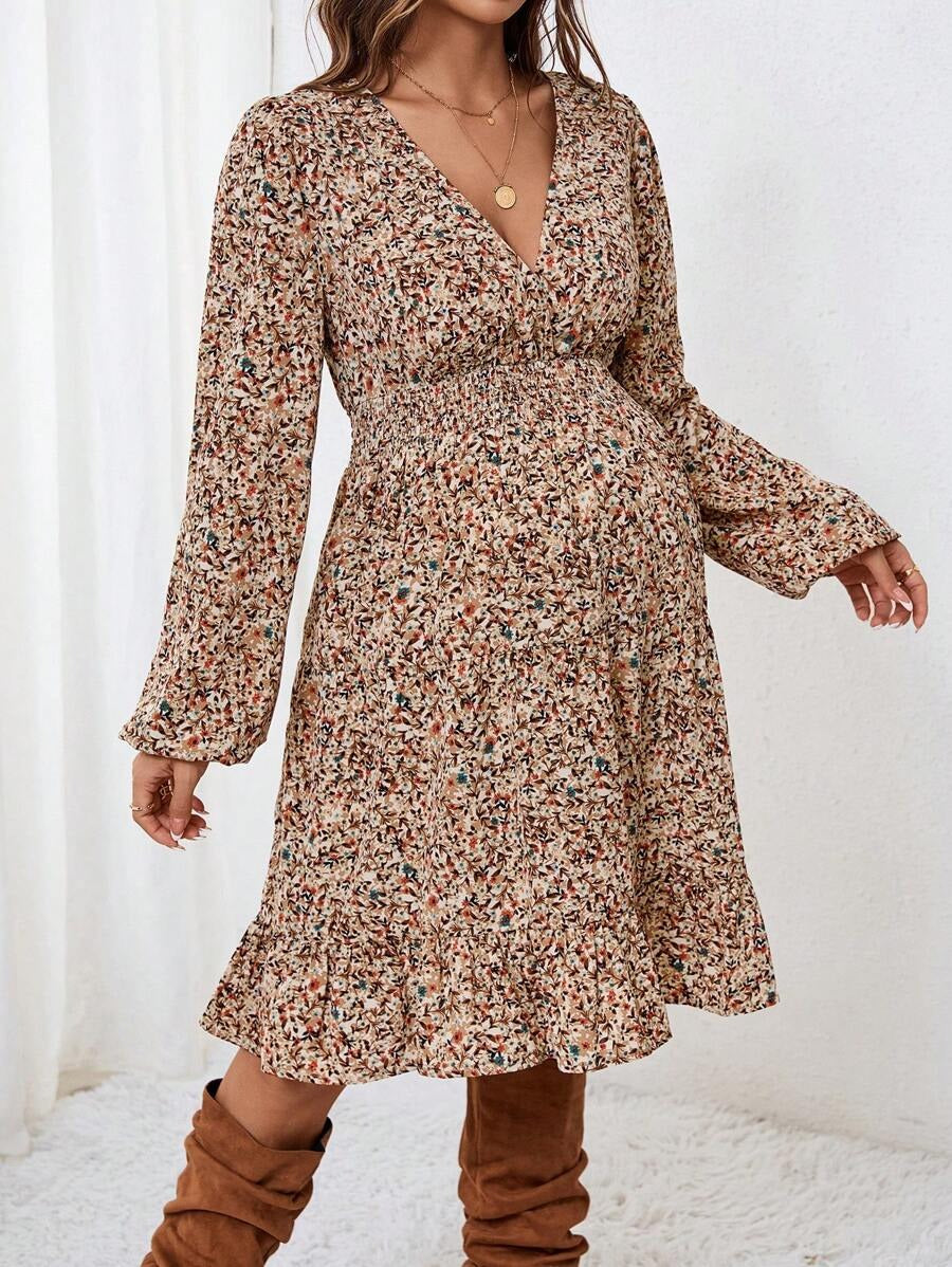 Zwangerschapsjurk met Diepe V-Hals en Fijne Bloemenprint